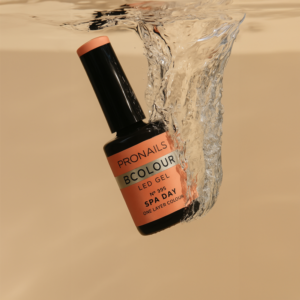 ProNails BColour 395 Spa Day. Een zachte, serene nude met een vleugje beige. TPO-vrij, vegan en perfect voor een elegante, langhoudende salonlook.